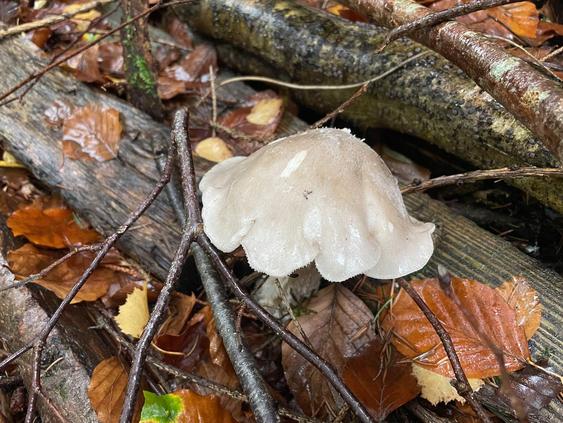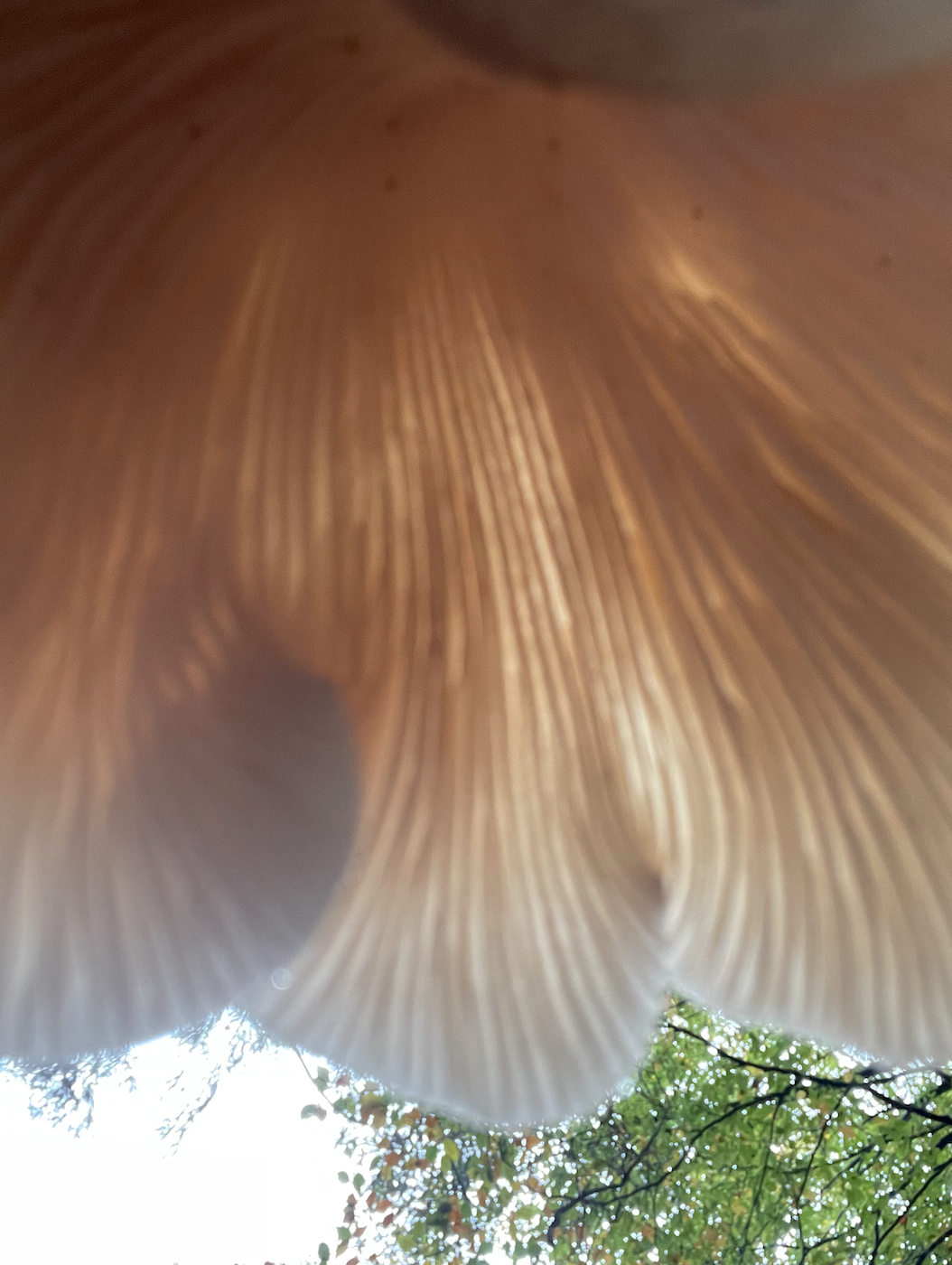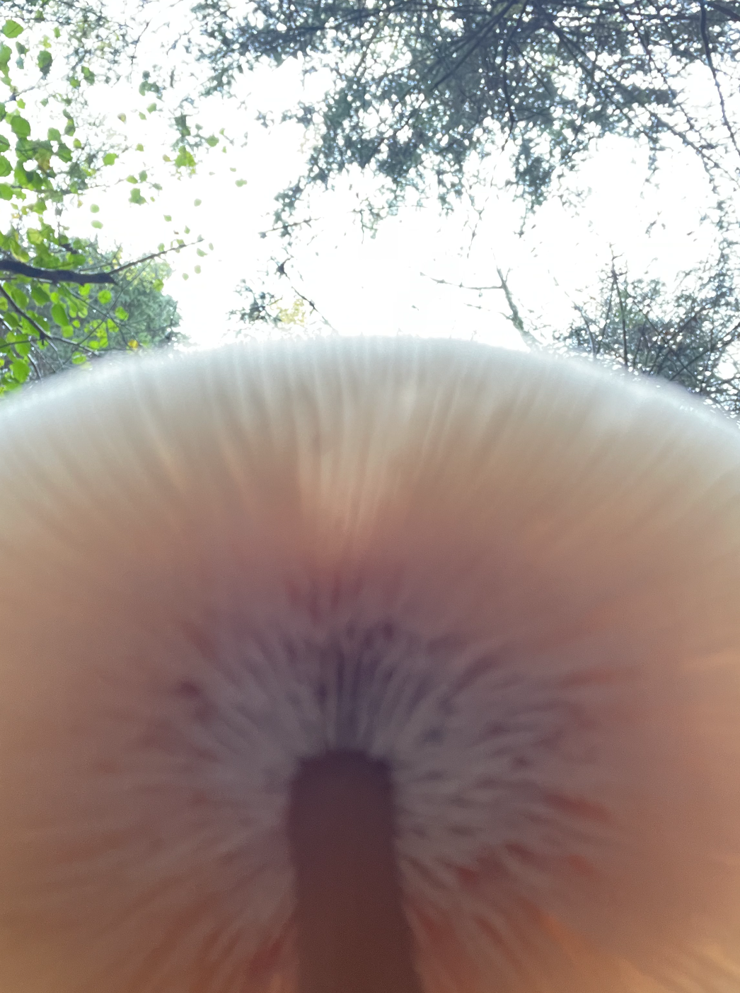 In a forest recently, I took a series of photos looking up. A ground level perspective in contrast to the bird’s eye view. I was particularly interested in capturing the underside of various fungi, with the trees above. The relationship between tree roots and fungi is a symbiotic one. Each relies on the other for survival.