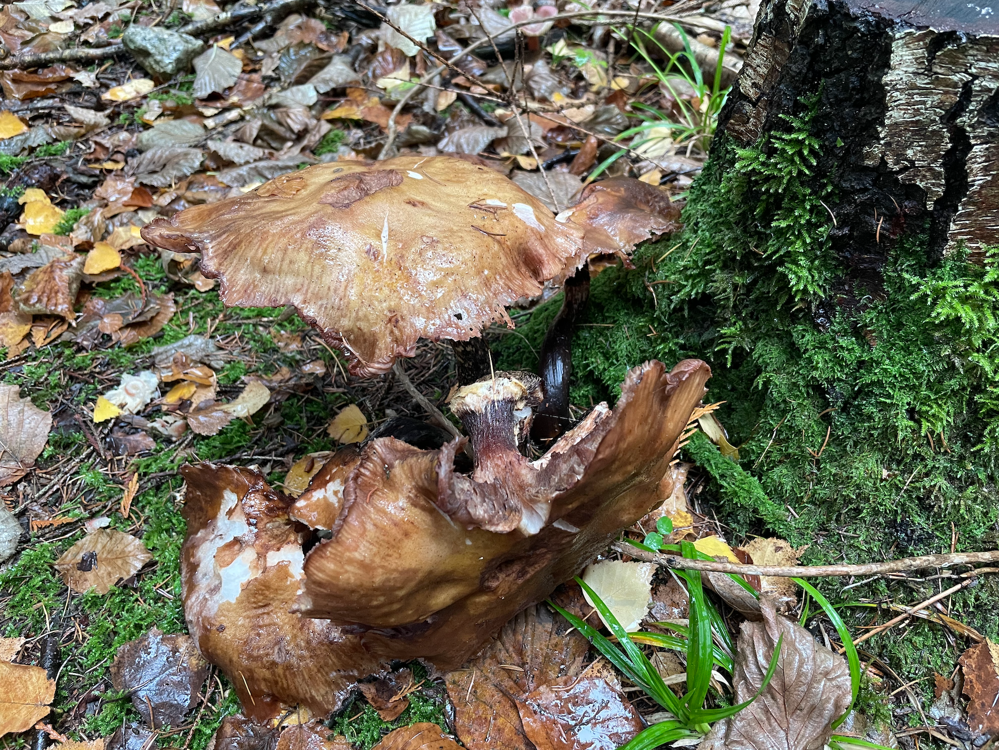 Fungi are the fruit of vast networks of fine underground threads, mycelium, which cover large areas across the forest floor. By intertwining with tree roots, mycelium share water and nutrients they collect, in exchange for carbon and sugars, which they need to sustain their fungi. The mycelium connection between roots enables trees to communicate directly with each other. And mycelium don’t limit their connections to trees. They create an extensive subterranean network between trees and other plants, known as mycorrhiza, meaning fungus-root.