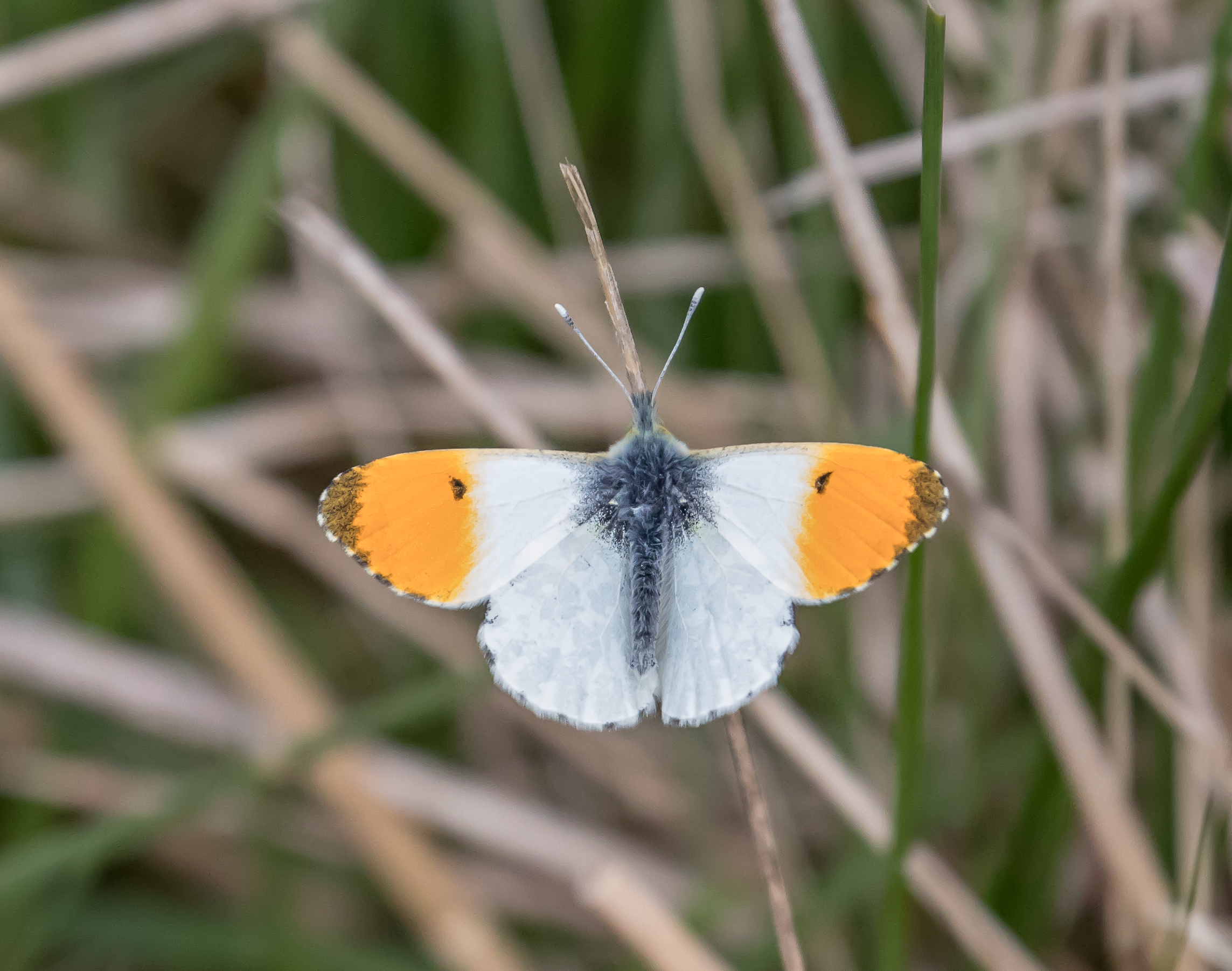 Widespread through the UK, the orange-tip preferred habitats include meadows, woodland, and the banks of streams and rivers. Named after the bright orange wing tips of the male butterfly, the adults are seen between April and June.
