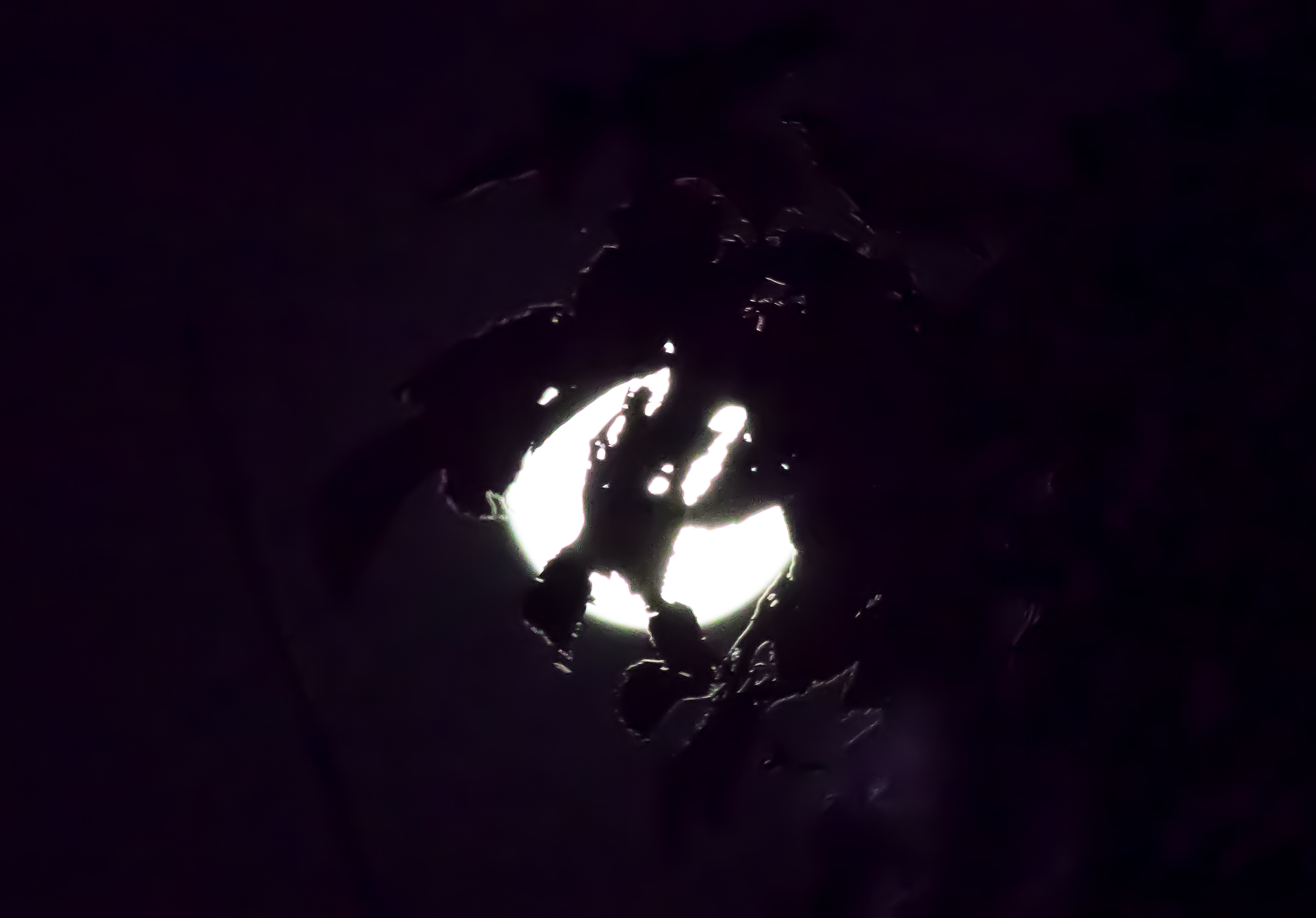I set the focus to manual, and improvised a tripod by leaning on my car. A couple of final images are below; one focussed on the Moon, the other on foliage in front of me. Does anybody else see a dragon’s head in the second image?!